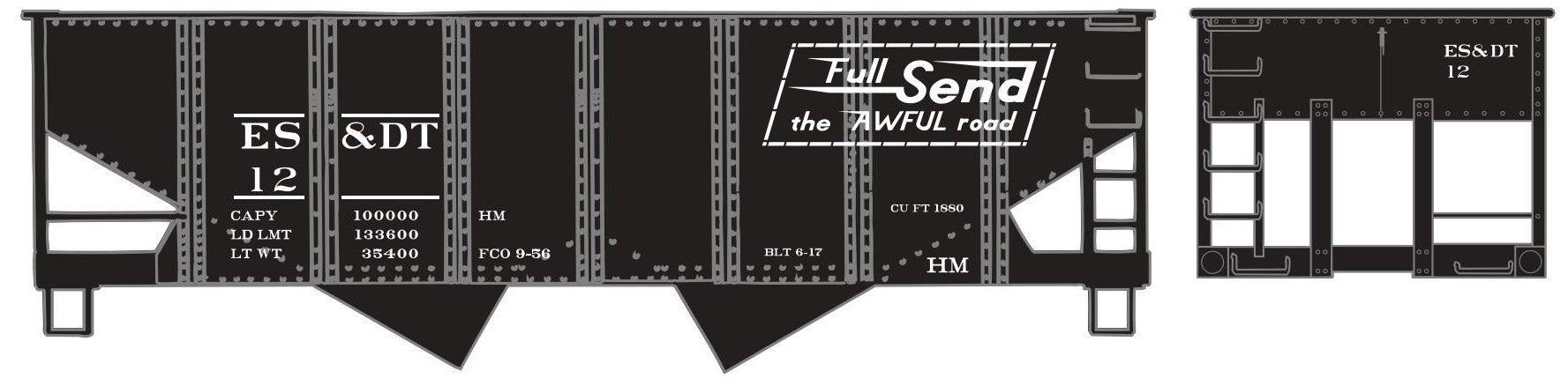 HO scale accurail kit for a USRA Steel Hopper Lettered ES&DT in the "The Awful Road" Herald
