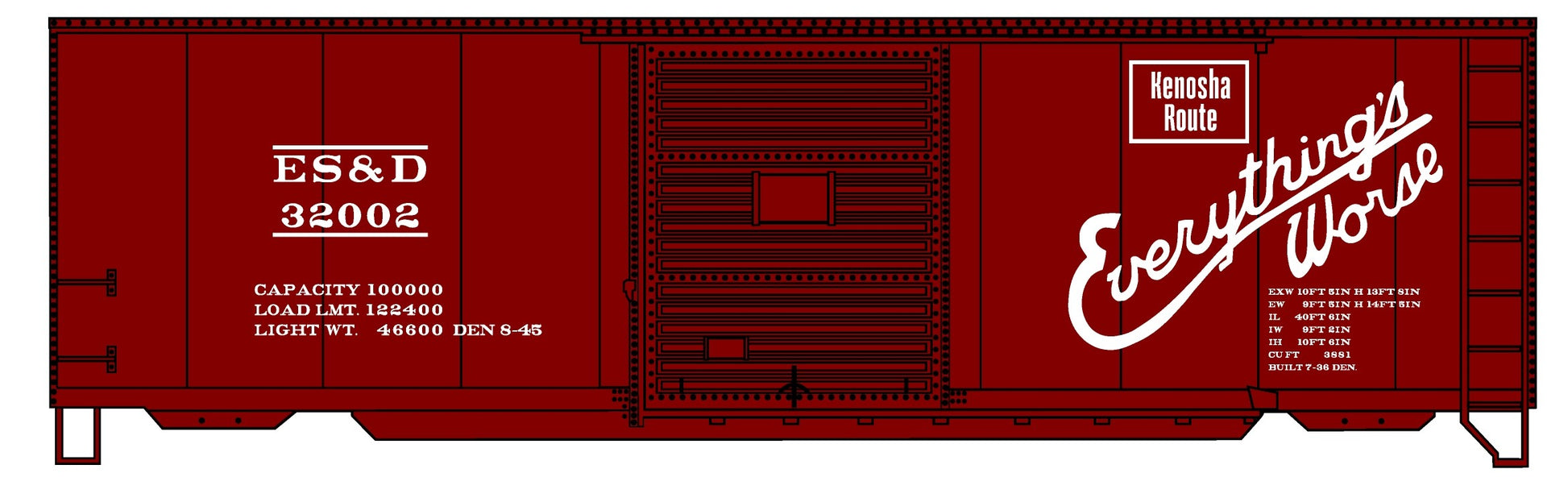 HO scale accurail kit for a 40' PS Boxcar in our new Everything's Worse scheme! Inspired by the Burlington Everywhere West logo!