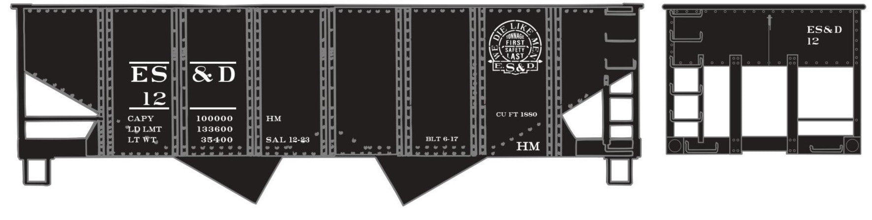 HO scale accurail kit for a USRA Steel Hopper Lettered ES&D in the Stencil Herald